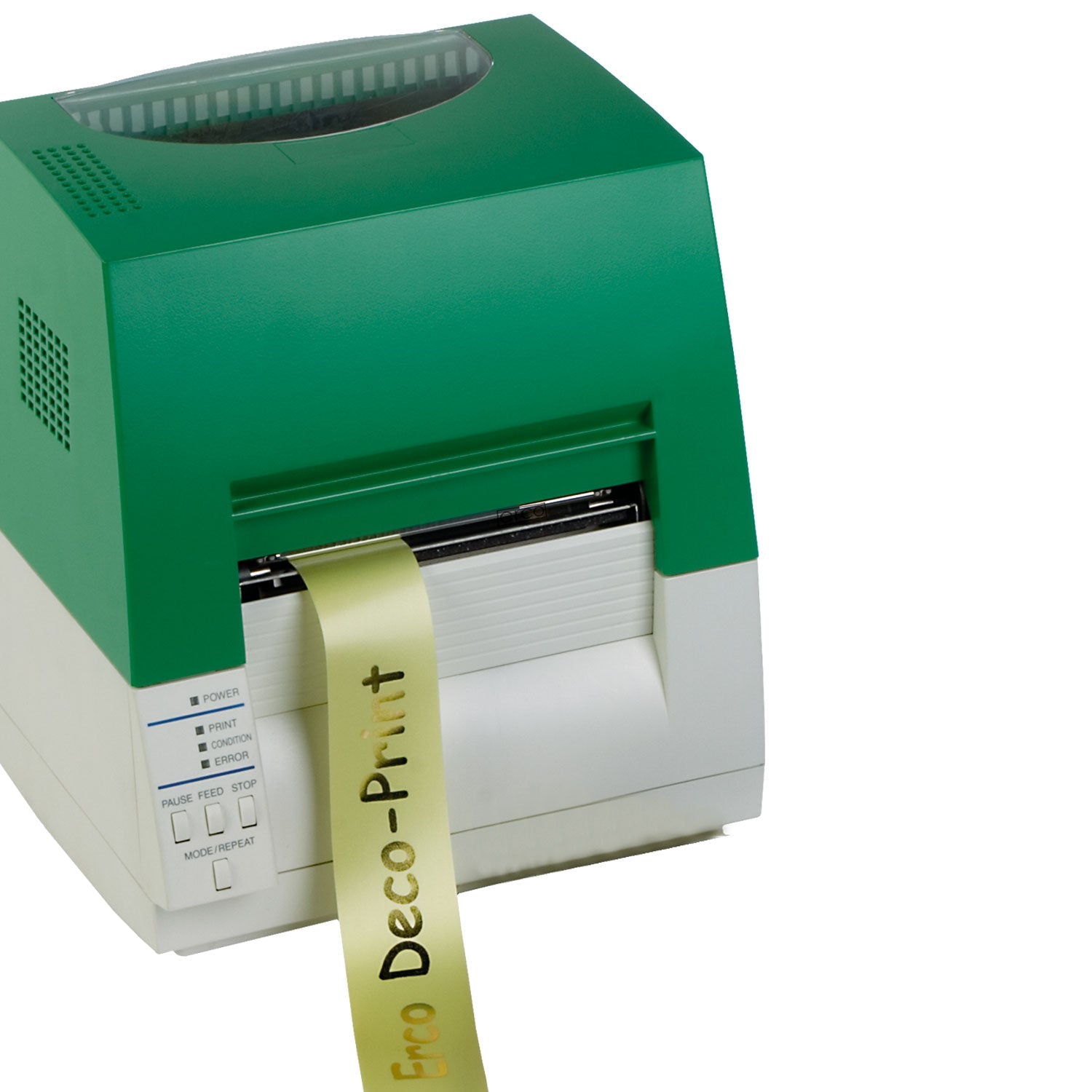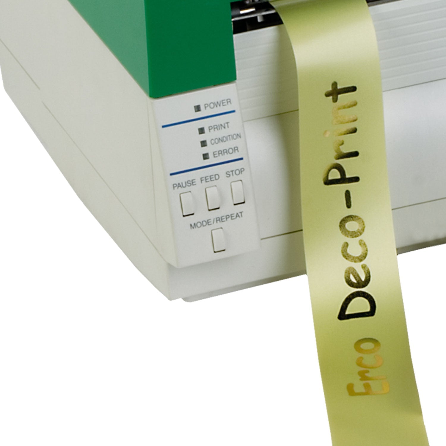 Der Erco Deco-Print ermöglicht das Bedrucken von Schmuckbändern ganz ohne PC- und Software-Kenntnisse. Texte werden über die angeschlossene Tastatur direkt an den Drucker übermittelt und in Sekunden auf das Schmuckband übertragen – fertig.