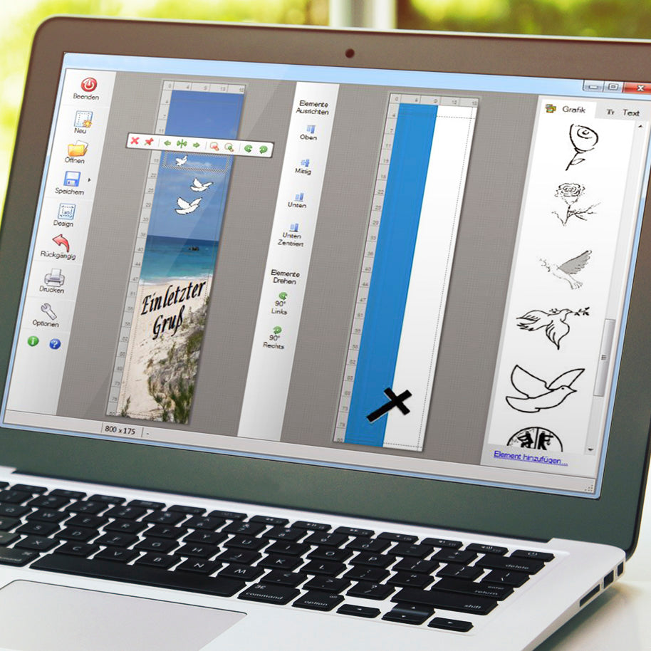 Unsere Software erco-Schleife ermöglicht die einfache und individuelle Gestaltung von Schleifen, Schmuckbändern und Bannern. Die leicht zu bedienende Oberfläche unterstützt Sie bei der kreativen Umsetzung.